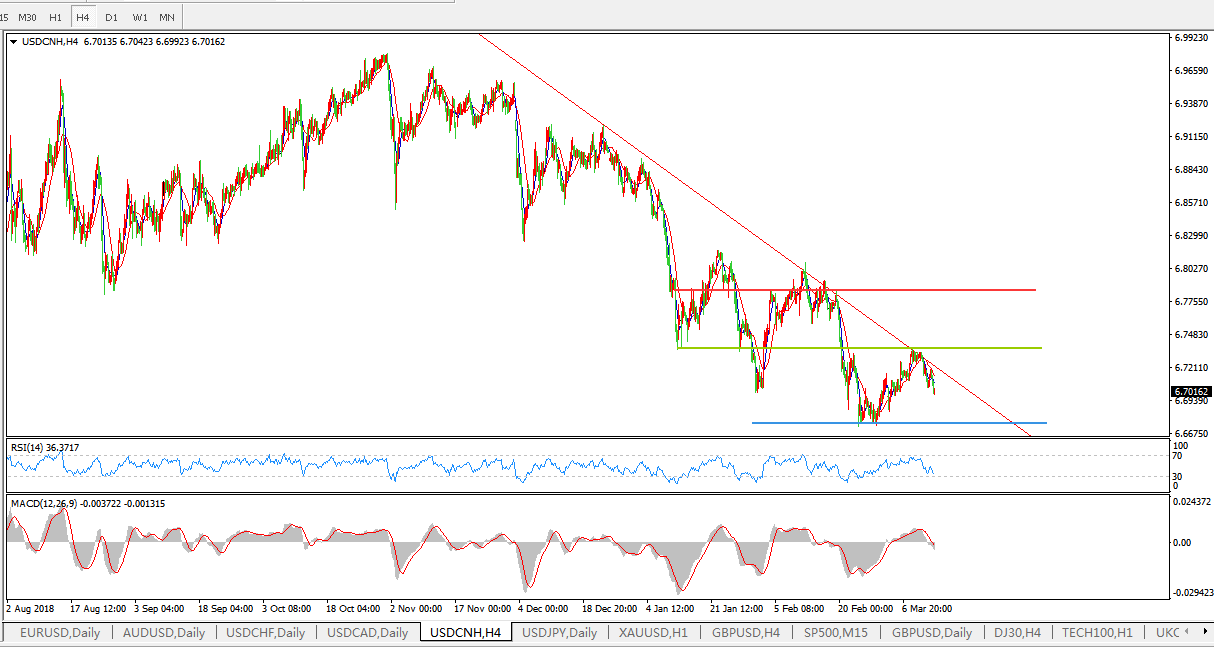美元兑人民币USDCNH  4小时图: