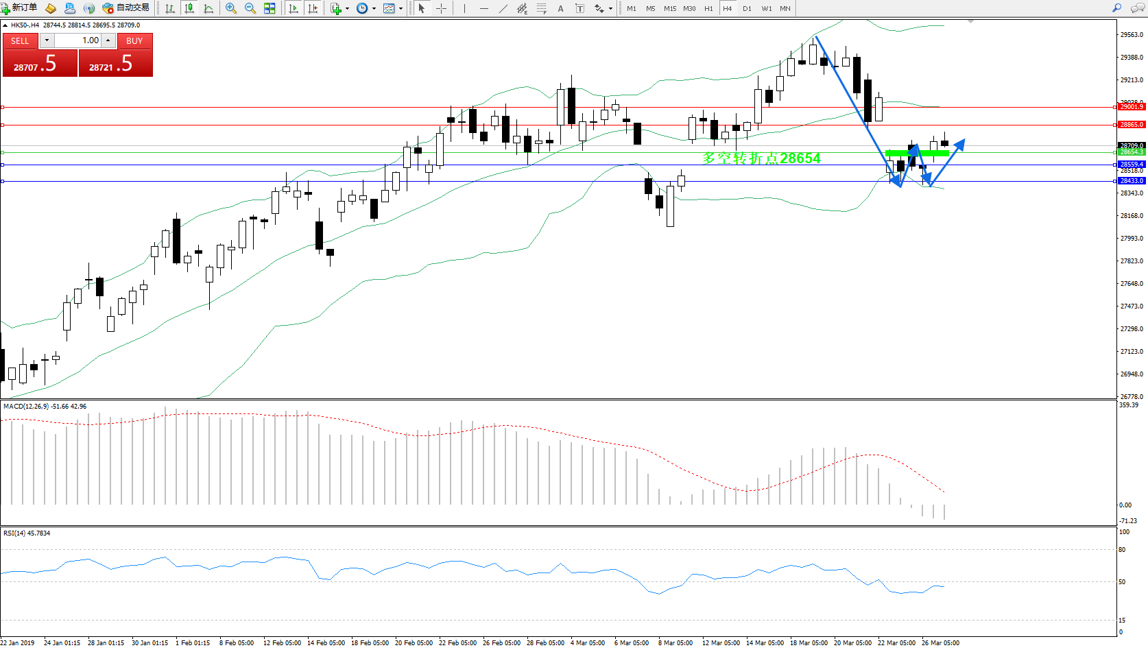 技术点评:高位下行后出现短期整理后有上行迹象,下方受制于布林带下轨附近支撑,MACD指标0轴下方徘徊,RSI指标50均衡线下方平移;
