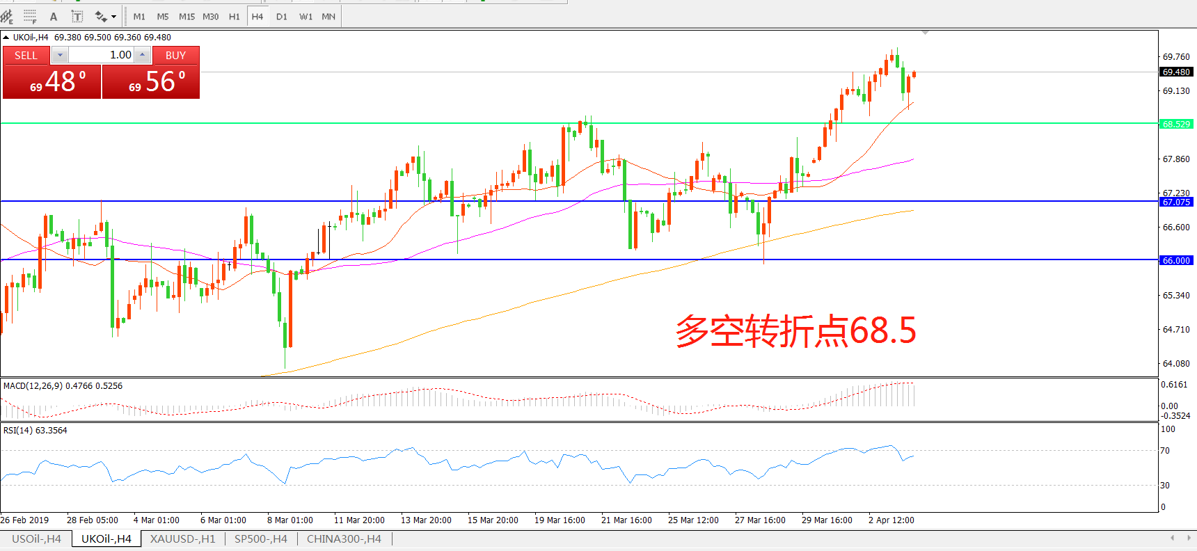 美国能源信息署(EIA)周三(4月3日)公布报告显示,上周美国原油库存再度大增,但汽油和精炼油库存则继续下降,此外,上周美国国内原油产量增加10万桶至1220万桶/日,再创纪录新高。这令原油多头信心受挫。最终布伦特原油收报69.48美元/桶