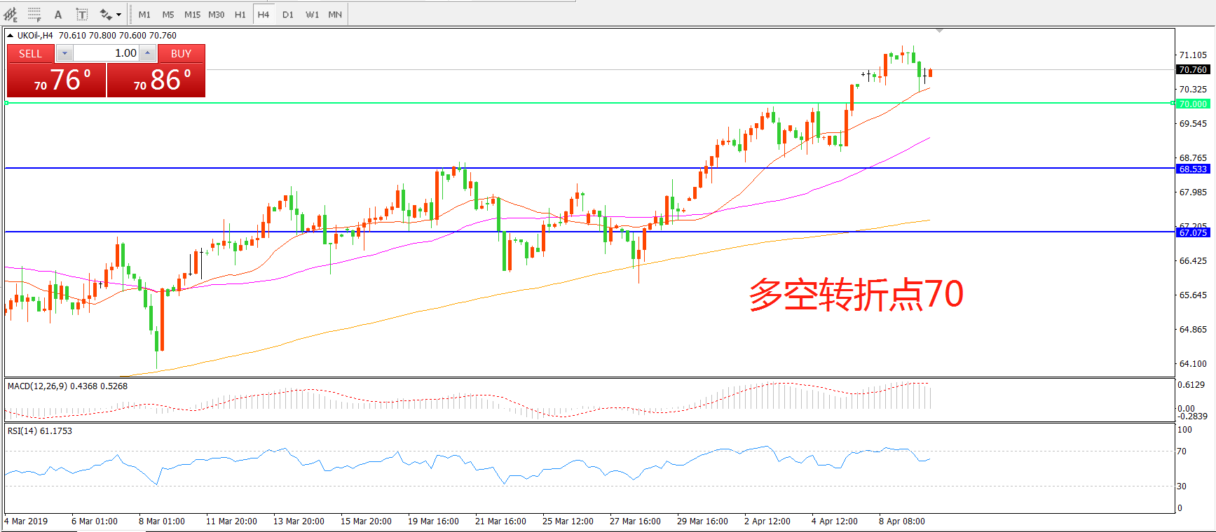 多空转折点:70.00