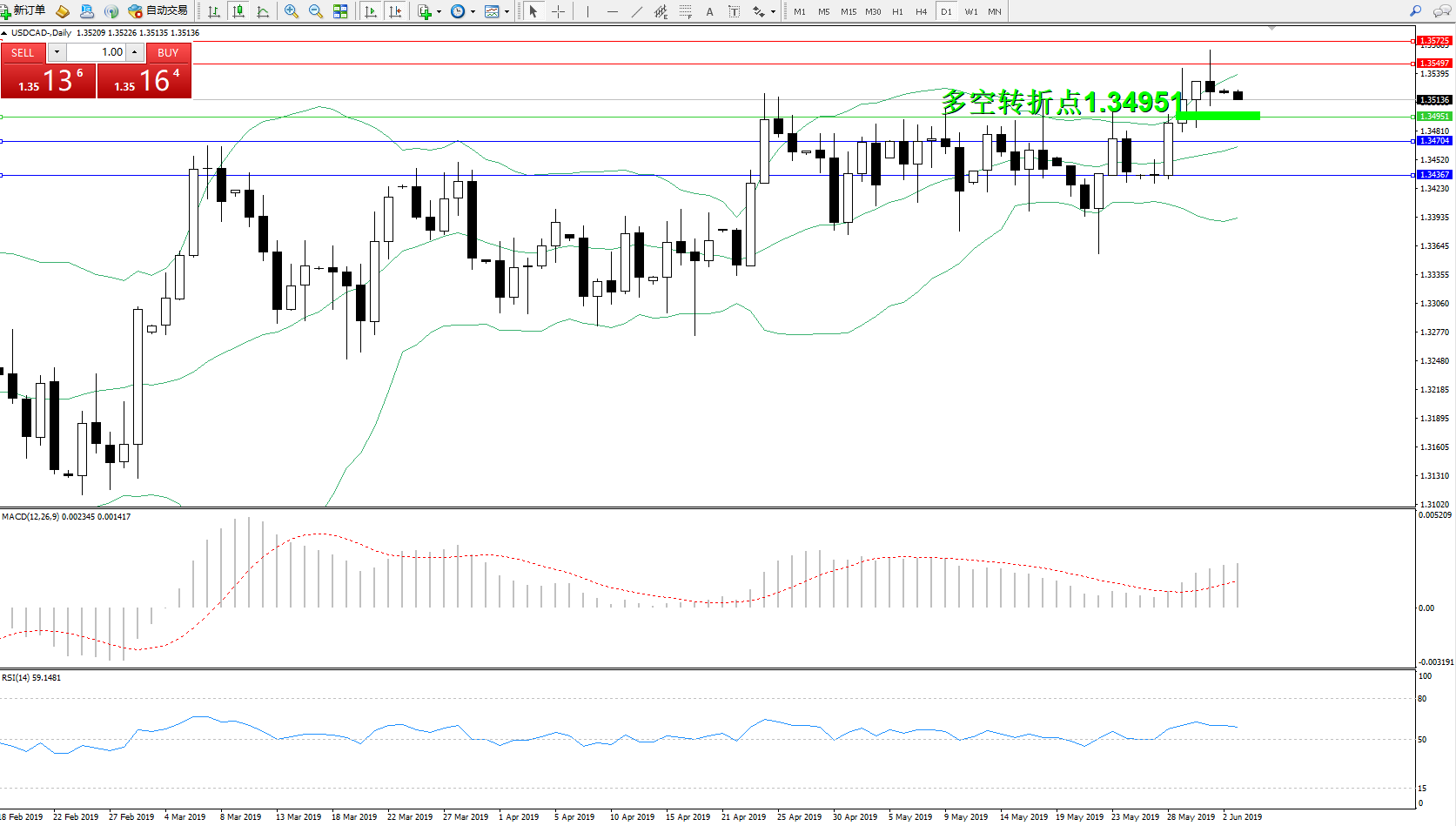 交易策略:1.34951上方看涨,目标1.354971.35725