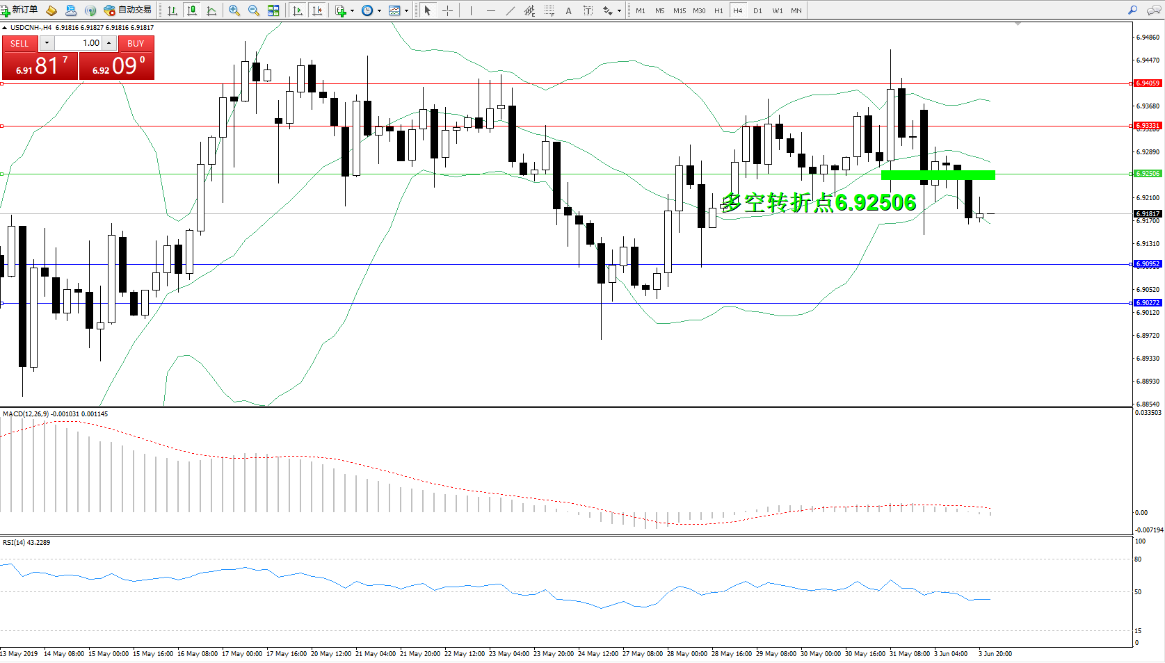 交易策略:6.92506下方看跌,目标6.909526.90272
