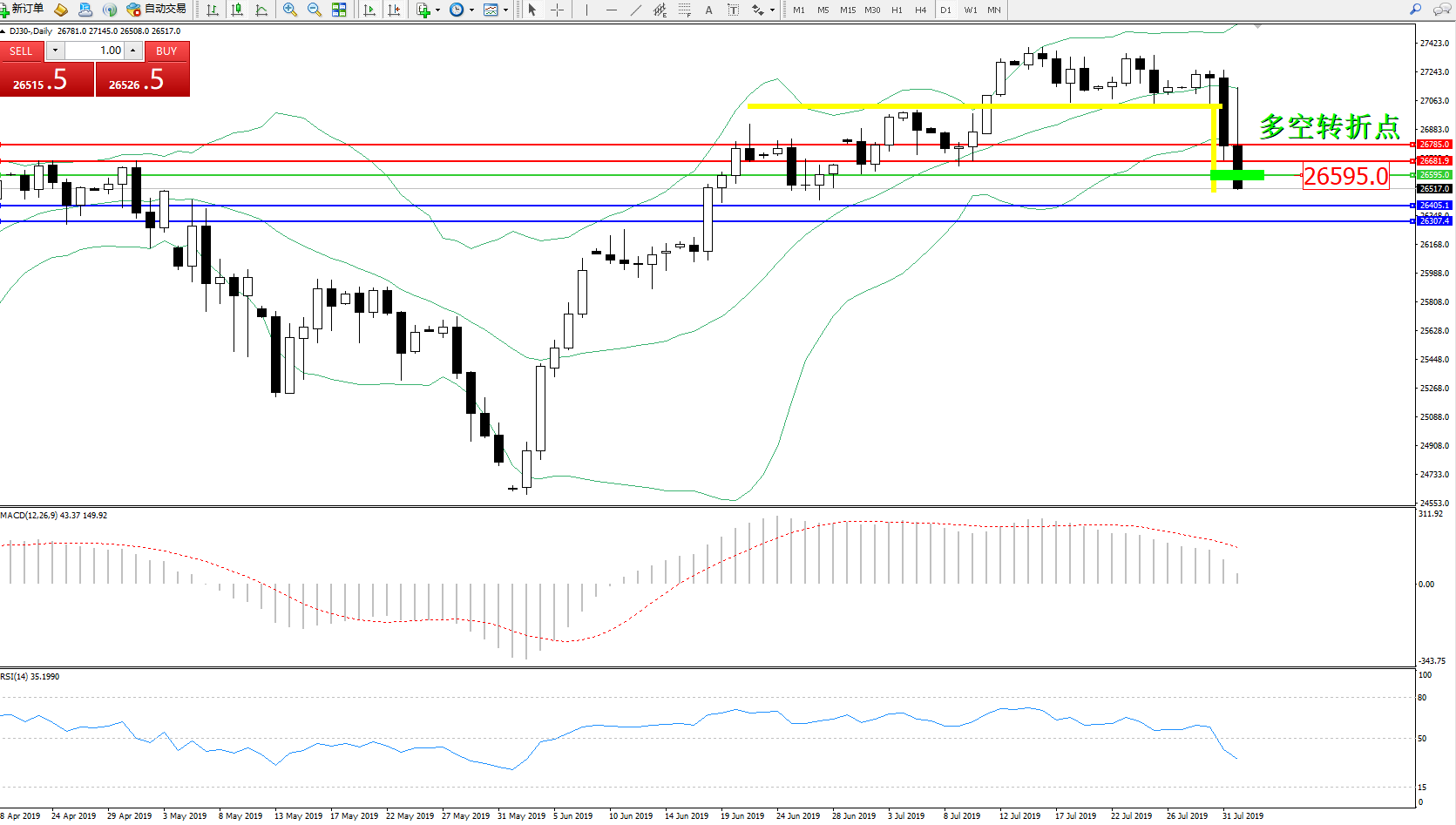 道琼斯指数81日(周四)收盘下跌280.90点,跌幅1.05%,报26583.42点。美联储在预期经济可持续扩张的情况下依然降息,下一次估计可能在9月;中美商贸谈判再次不欢而散,美国总统特朗普有关贸易关系的言论搅动了金融市场,贸易局势恶化使市场担忧全球经济放缓风险增大。在美联储昨天做出决定后,特朗普很快就在推特上表达了他的反对,所以他越过界限,又搞起了贸易争端。