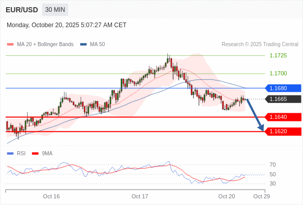 在 1.1680 之下,看跌,目标价位为 1.1640 ,然后为 1.1620 。