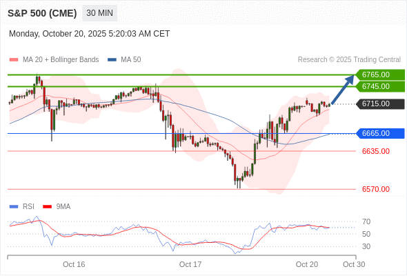 在 6665.00 之上,看涨,目标价位为 6745.00 ,然后为 6765.00 。