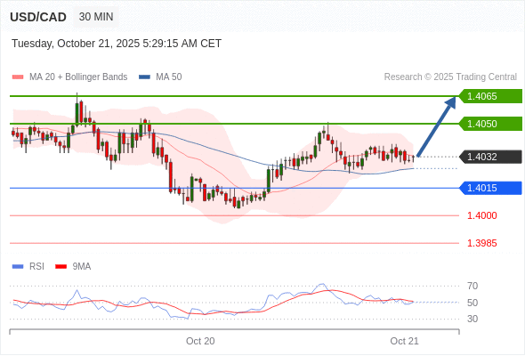 在 1.4015 之上,看涨,目标价位为 1.4050 ,然后为 1.4065 。