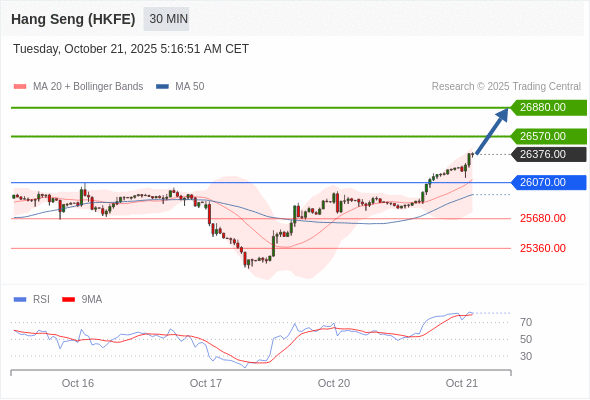 在 26070.00 之上,看涨,目标价位为 26570.00 ,然后为 26880.00 。