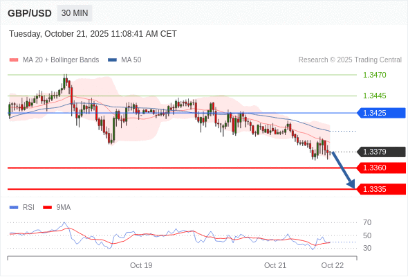 在 1.3425 之下,看跌,目标价位为 1.3360 ,然后为 1.3335 。
