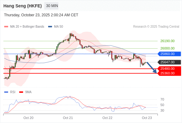 香港恒生指数期货 当日内: 目标位为25360.00。