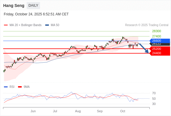 恒生指数 短线: 短期关键阻力位在26600。