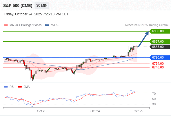 在 6790.00 之上,看涨,目标价位为 6857.00 ,然后为 6900.00 。