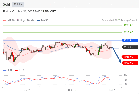 交易策略: 在 4160.00 之下,看跌,目标价位为 4045.00 ,然后为 4003.00 。