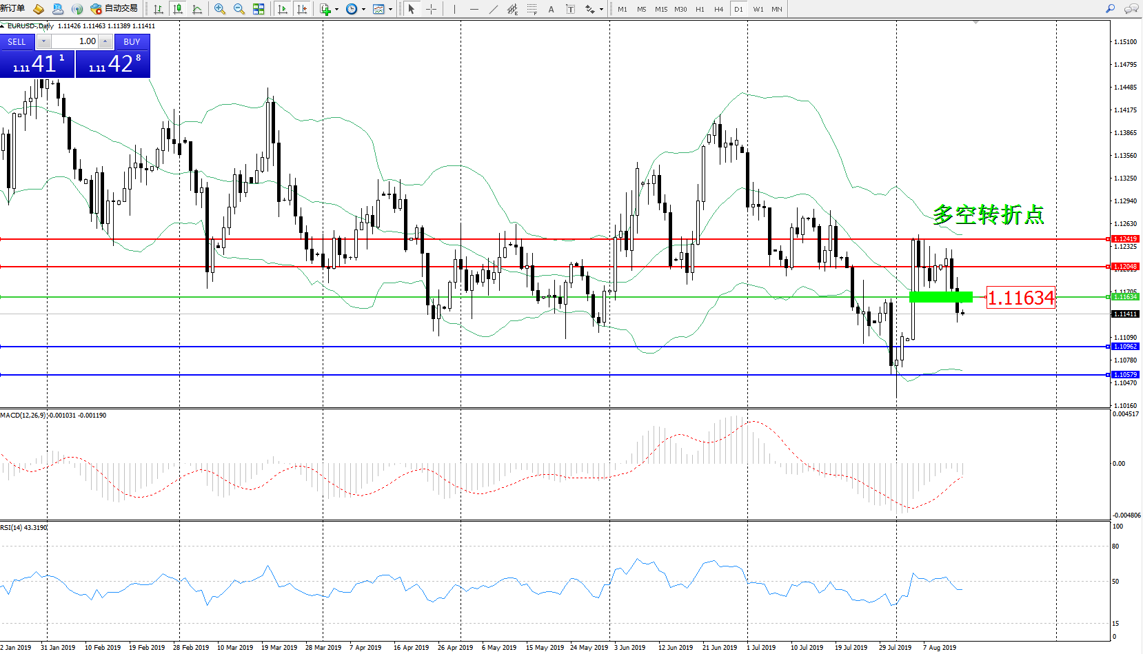 交易策略:1.11634下方看跌,目标1.10962、1.10579