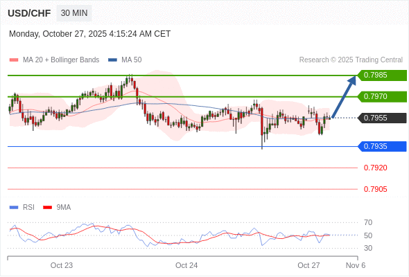 在 0.7935 之上,看涨,目标价位为 0.7970 ,然后为 0.7985 。