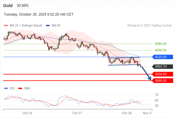 在 4015.00 之下,看跌,目标价位为 3924.00 ,然后为 3890.00 。