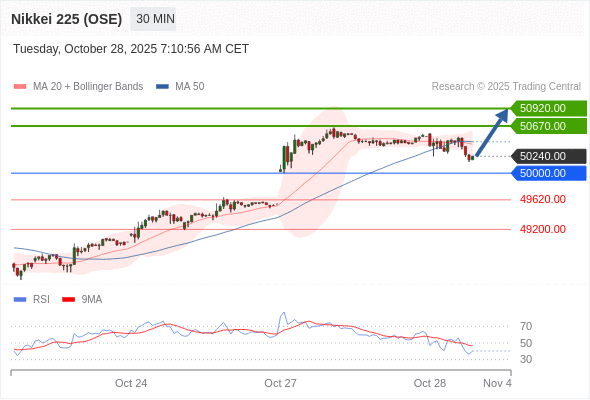 在 50000.00 之上,看涨,目标价位为 50670.00 ,然后为 50920.00 。