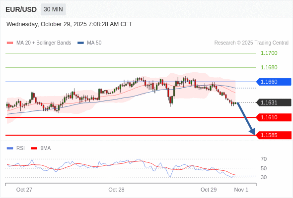 在 1.1660 之下,看跌,目标价位为 1.1610 ,然后为 1.1585 。