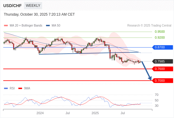 交易策略: 在 0.8700 之下,看跌,目标价位为 0.7600 ,然后为 0.7000 。