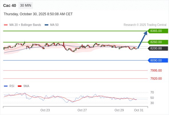 Cac 40 当日内: 期待8260.00。