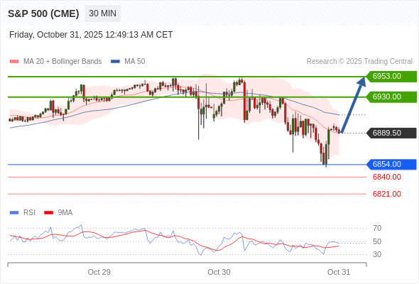 在 6854.00 之上,看涨,目标价位为 6930.00 ,然后为 6953.00 。