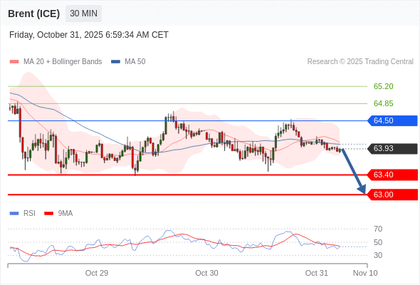 交易策略: 在 64.50 之下,看跌,目标价位为 63.40 ,然后为 63.00 。