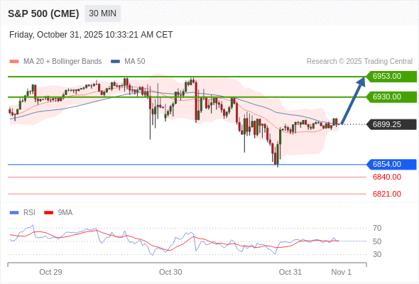 在 6854.00 之上,看涨,目标价位为 6930.00 ,然后为 6953.00 。