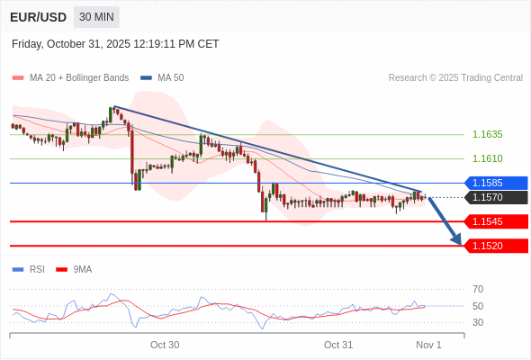 在 1.1585 之下,看跌,目标价位为 1.1545 ,然后为 1.1520 。