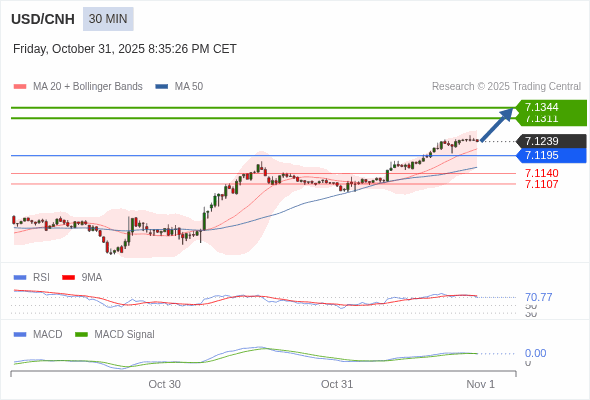交易策略: 看涨,当 7.1195 为支撑位,目标定在7.1344。