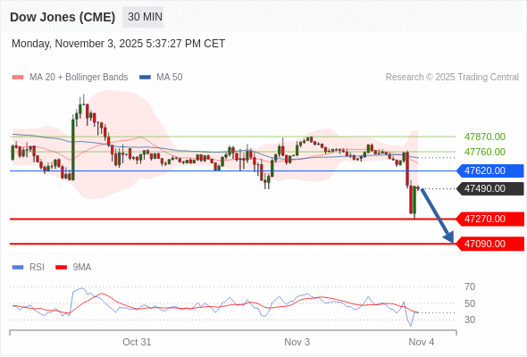 在 47620.00 之下,看跌,目标价位为 47270.00 ,然后为 47090.00 。