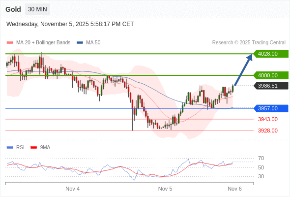 在 3943.00 之上,看涨,目标价位为 4000.00 ,然后为 4028.00 。