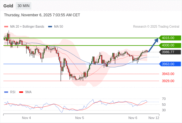 在 3963.00 之上,看涨,目标价位为 4000.00 ,然后为 4015.00 。