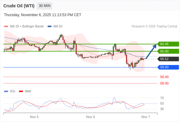 在 59.00 之上,看涨,目标价位为 60.00 ,然后为 60.45 。