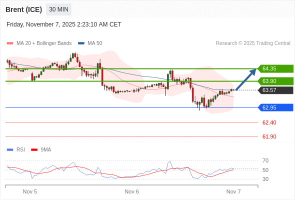 在 62.95 之上,看涨,目标价位为 63.90 ,然后为 64.35 。