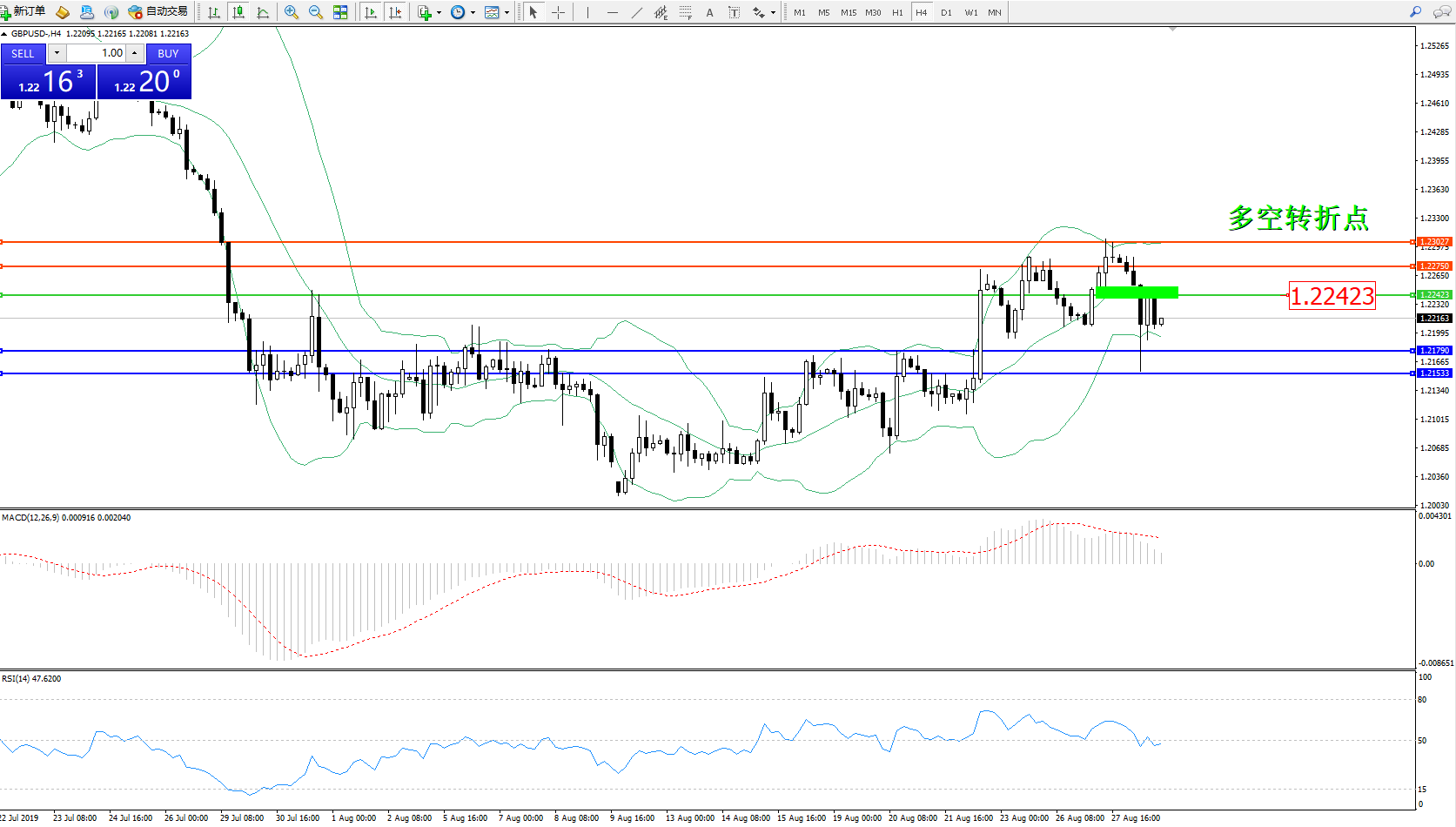 交易策略:1.22423下方看跌,目标1.217901.21533