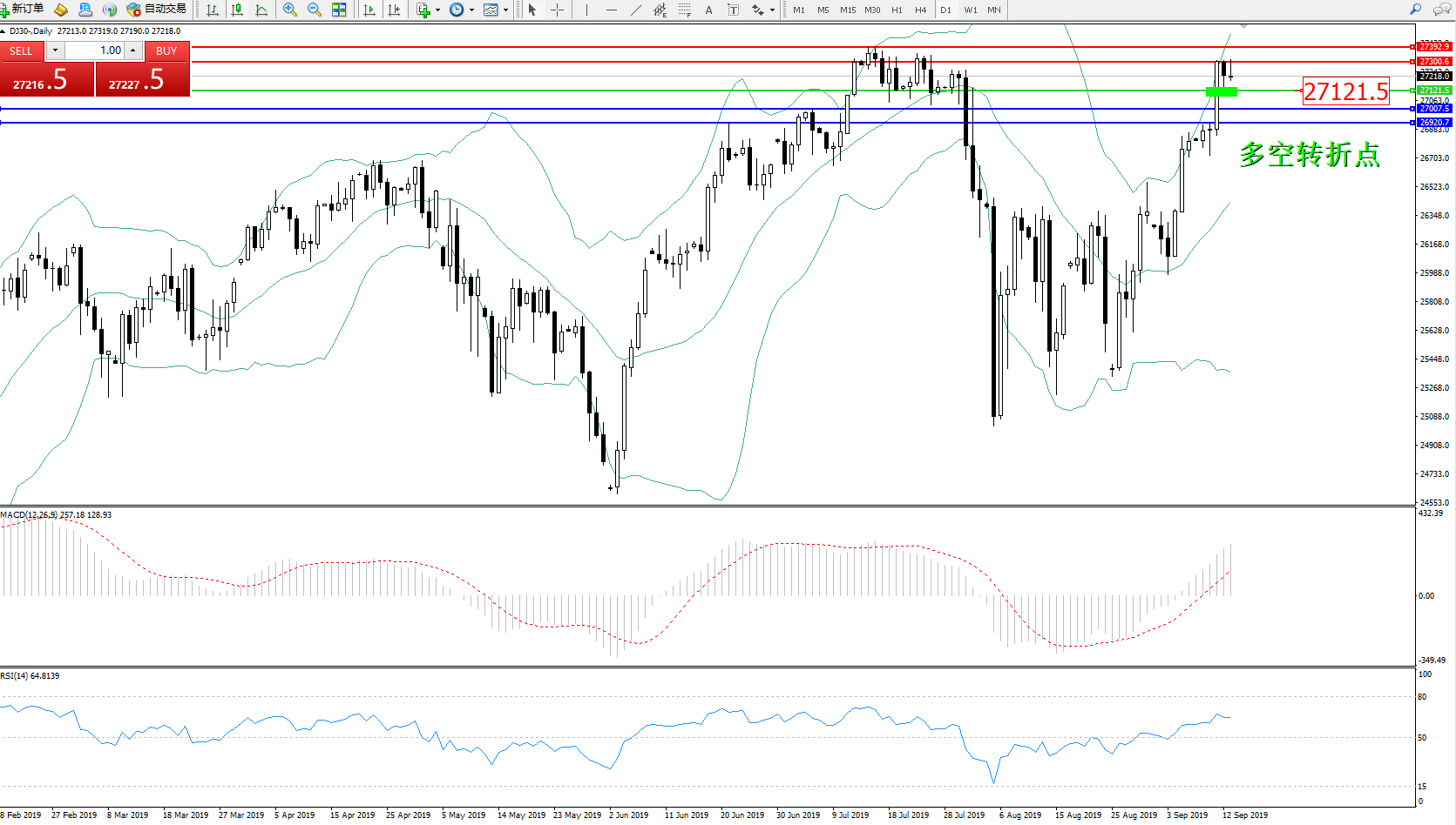 道琼斯指数913日(周五)收盘上涨36.90点,涨幅0.14%,报27219.38点。道指录得连续第8日上涨,美国8月零售销售增幅超出预期。投资者仍在关注国际贸易局势的发展及全球央行的宽松政策前景。不过,经济指标的改善不太可能影响美联储下周开会时降息。美国10年期国债收益率一度升高13个基点至1.90%附近,是82日以来最高,因大宗商品交易顾问和房地产投资信托基金抛售国债;然而,实钱和央行买入5年期国债。