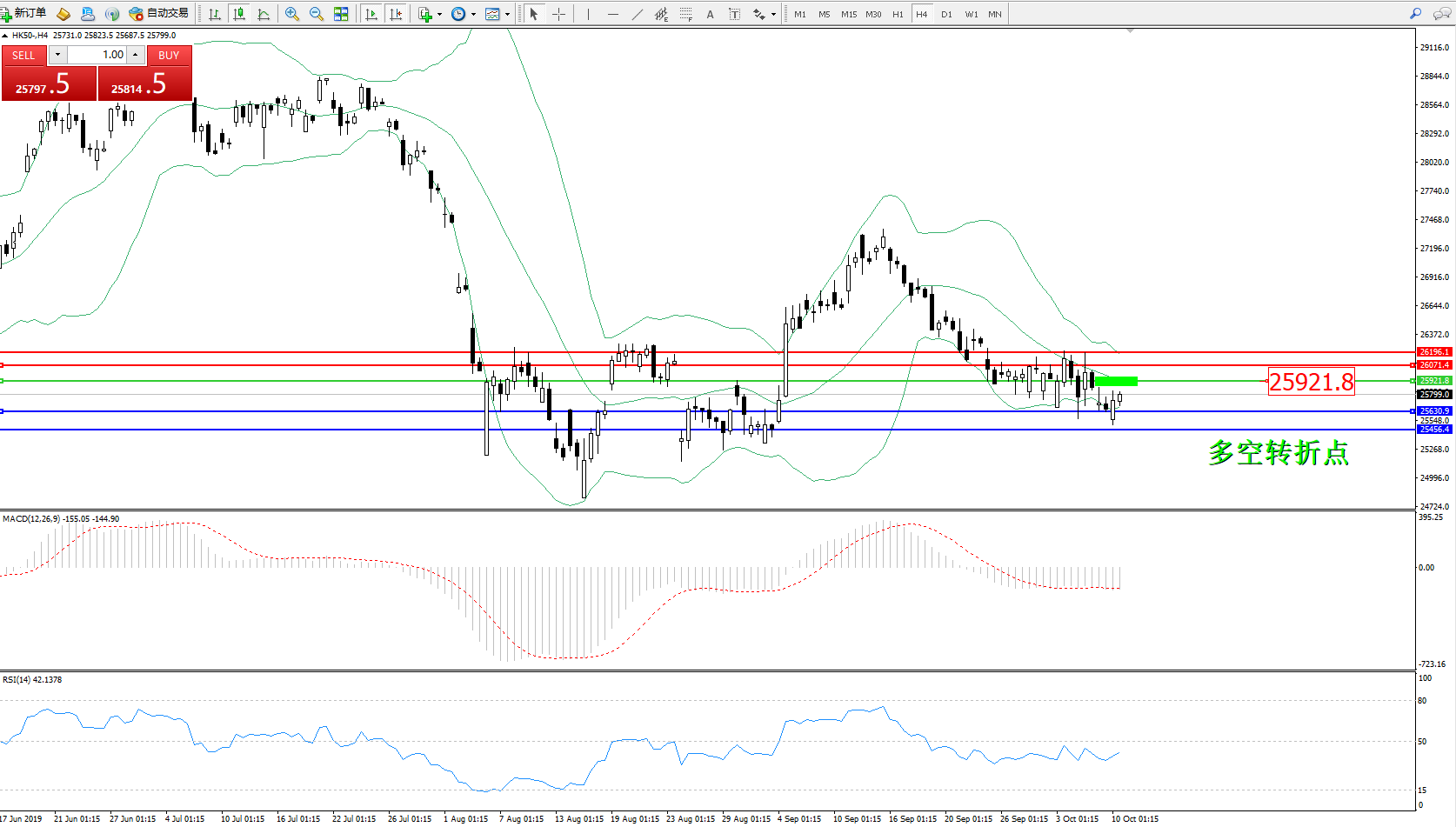 香港恒生指数1010日(周四)收盘上涨25.12点,涨幅0.10%,报25707.93点;港股小幅低开后向下寻底,恒指最多跌160点,低见25521。随后跟随A股反弹造好,并逐步上25799,。外围环境不断变化,恒指继续维持窄幅震荡。消息面的情况并不是特别乐观,同时市场对贸易局势的担忧,也在一定程度上抑制了恒指向上的步伐。鲍威尔昨日在公开场合演讲,增加市场憧憬月底降息可能,结合来看,市场对恒指走势仍存信心。