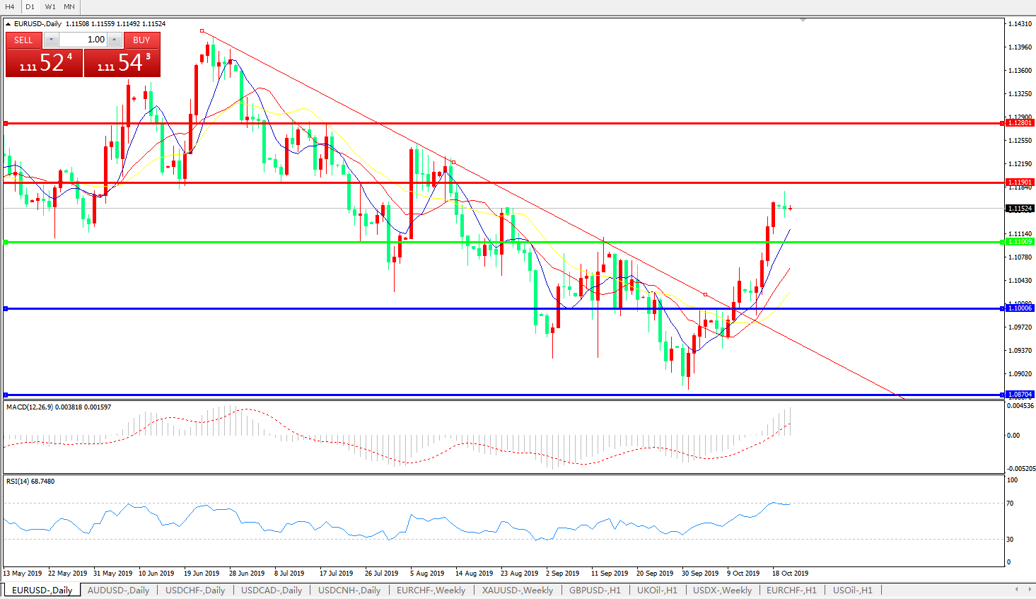 欧元兑美元在周一欧洲时段盘初跳涨升至高点1.1179,收复了早盘的跌势,再度刷新8月中旬以来的两个多月新高,原因在于英镑汇价在日内再度走强,投资者在短暂的失望之后,仍继续看好英国有序脱欧前景; 此前,英国新版脱欧协议周末在该国议会未能闯关成功,此状况令市场一度失望,导致欧系货币在亚洲时段低开,但之后,市场经进一步解读后认为,英国硬脱欧风险眼下已经基本排除,这推动英镑继续走强,而同样状况也会让欧元区免于受到不确定性冲击,从而,欧元汇价也跟随保持强势;近期以来,关于英国脱欧的消息面因素主导市场,也令欧元反过来成为了英镑的“影子货币”。本周稍后,欧洲央行将召开政策会议,但市场已经提前预判现任行长德拉基在离任前的最后一次会议上料不会释放出重磅措施,因此,本周欧元汇价大概率仍将跟随英镑走势联动。