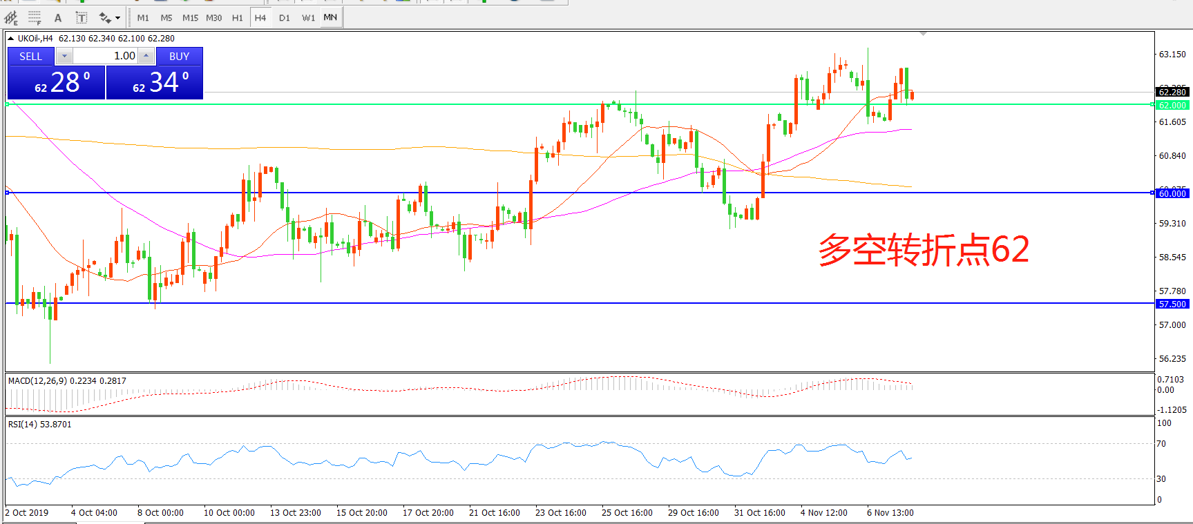 交易策略:在62.00之上看涨,目标64.50     66.00
