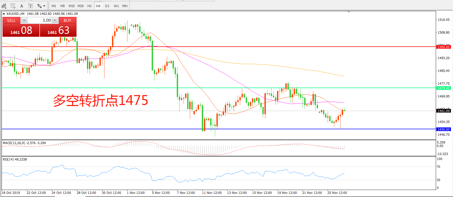 交易策略:在1475.00之下看跌,目标1450.00   1400.00