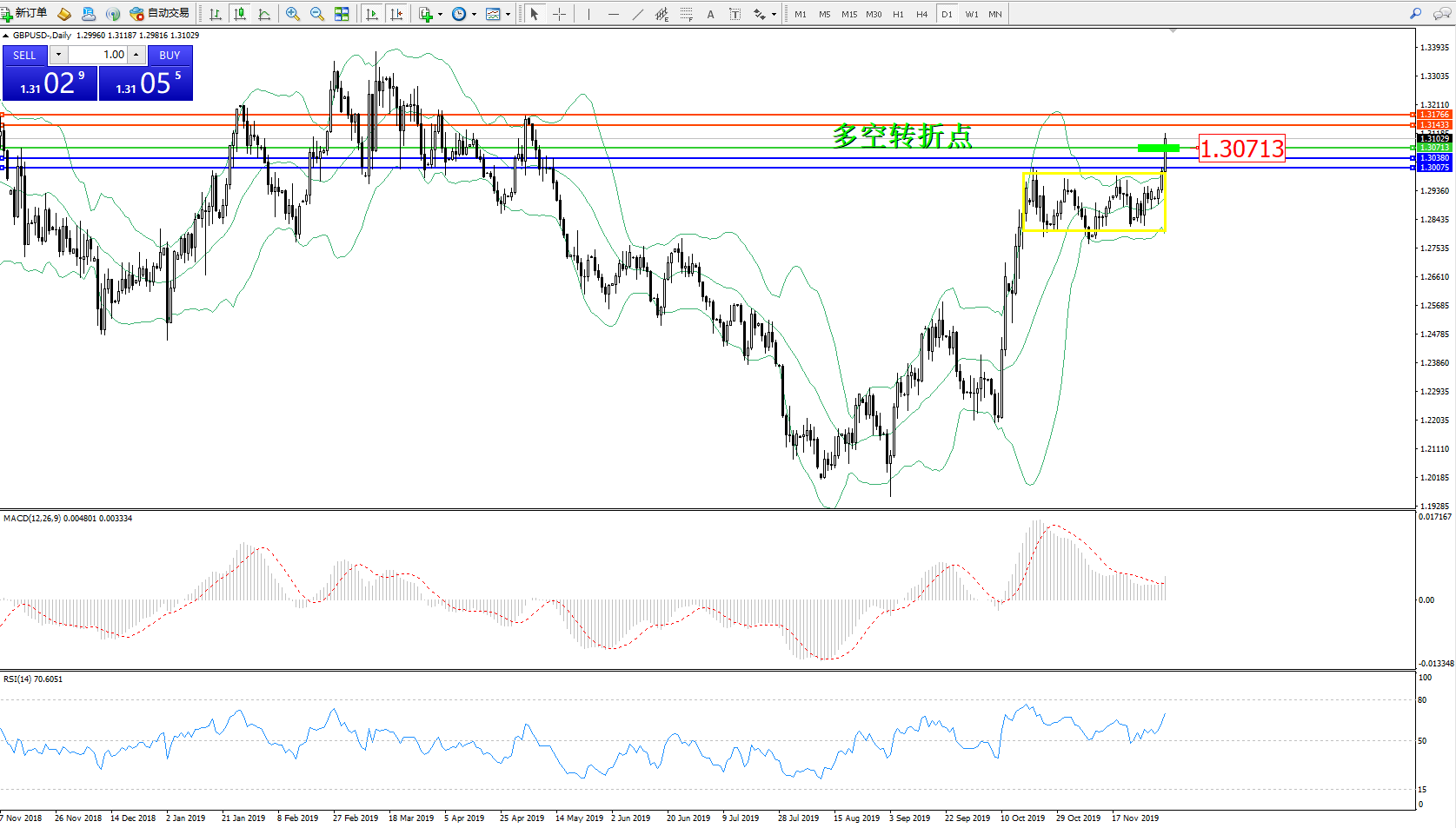 交易策略:1.30713上方看涨,目标1.31433、1.31766