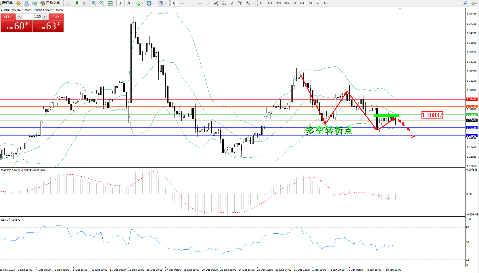 交易策略:1.30837下方看跌,目标1.30286、1.29943