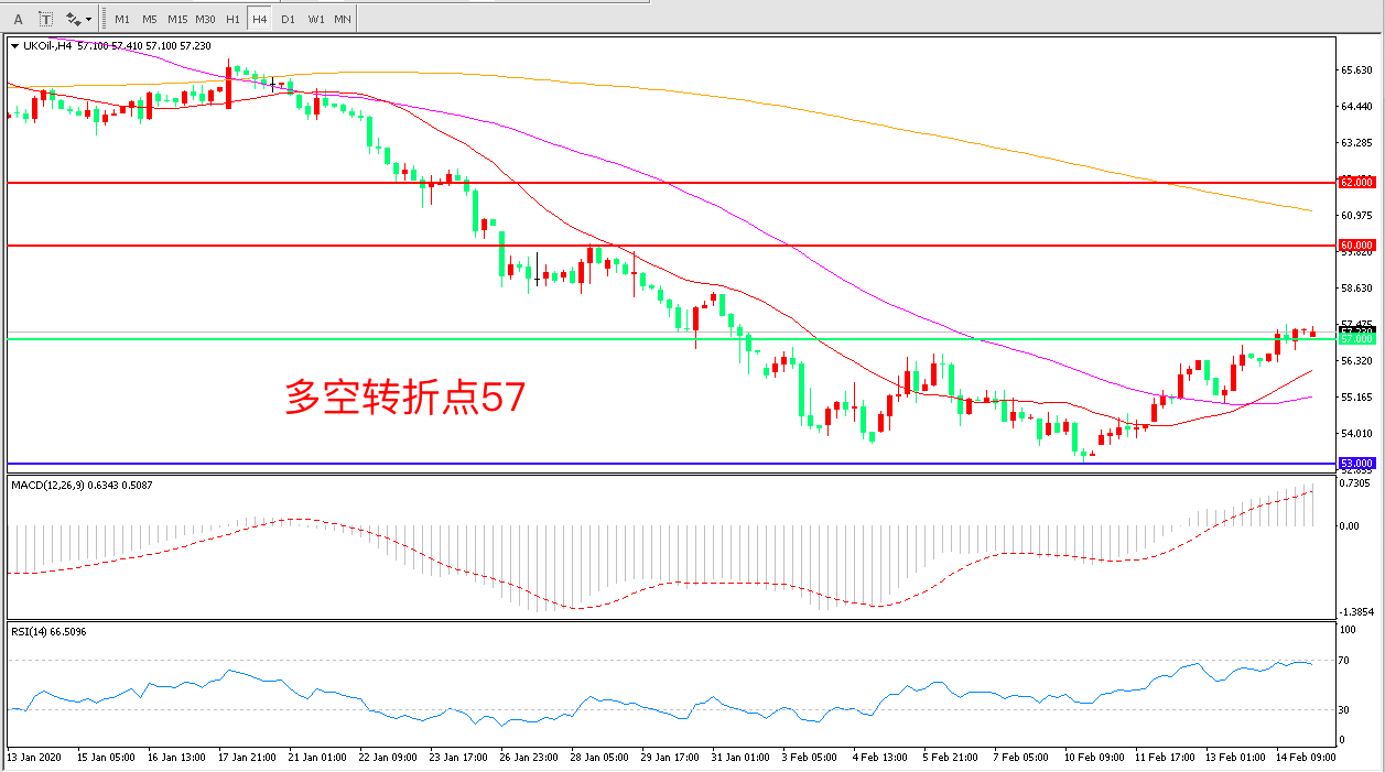 交易策略:在57.00之上看涨,目标60.00 62.00