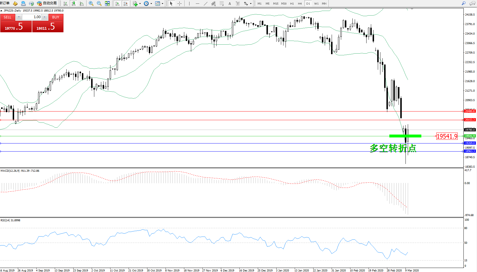 日经225指数3月10日(周二)收盘上涨208.00点,涨幅1.06%,报19840.50点。日内风险偏好情绪回暖,亚洲股市大幅走高,国内股市更是表现强势,同时投资者押注全球宽松将持续,这可能缓解目前的悲观经济预期,因避险买盘减弱,美国总统特朗普表示将寻求下调薪资税,并且给受影响的行业提供“极具实质性的纾困措施”。在特朗普政府考虑减税的消息影响下,目前对于风险情绪反弹是一个时机点。今日向国会提交紧急措施法案,市场出现紧张不安的波动,正在制定第二份卫生风险应对紧急方案,如有需要,将会与日本央行合作采取合适的措施,将会与金融机构、日本央行及其他国家保持密切沟通,并根据G7集团和G20的协议做出适当的回应,为应对卫生风险,将毫不犹豫的采取必要的措施,第二套紧急经济援助方案将包括针对就业、小型企业等领域的措施。