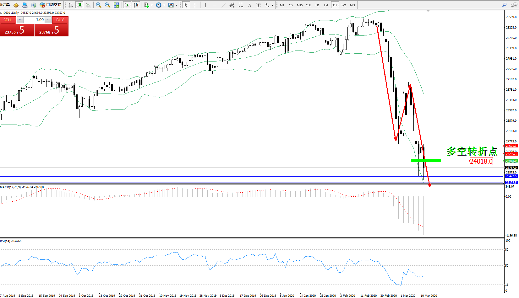 道琼斯指数3月11日(周三)收盘下跌1464.60点,跌幅5.85%,报23553.53点。美股周三大幅收跌,道指重挫逾1400点,率先跌入熊市,盘中三大股指一度悉数跌入熊市。市场仍在担忧疫情蔓延将重创全球经济。投资者普遍预计长达11年的美股牛市即将结束。笼罩股市的疫情担忧继续,全球央行都在出台刺激措施。风险资产全日大幅走低,随着确诊病例数量增加和更多国家实施旅行限制,美国在国内和国际上都缺乏领导力,这不会提振投资者信心。