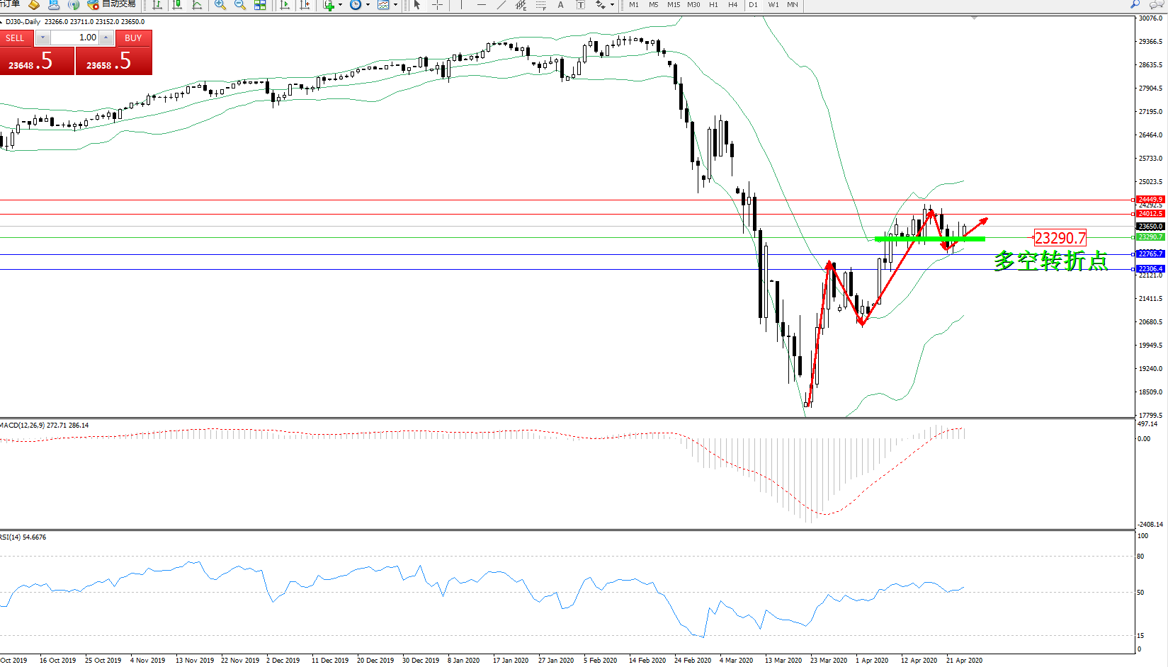 道琼斯指数4月24日(周五)收盘上涨260.00点,涨幅1.11%,报23775.27点。科技和消费类股推动美国股市走高,科技股中,苹果和微软涨幅居前,投资者权衡最新的企业财报以及美国为重新开放经济所做的努力。面对仍然令人震惊的经济数据,市场的稳定性和弹性可能是因为假设或希望收入和经济的收缩尽管巨幅但不会持久,市场有点像穿过谷底。美联储周二至周三将再度举行政策例会,由于此前美联储已经被政策利率下限调降至零,且承诺了无限度的量化宽松措施,投资者普遍认为其可用的政策工具已经尽数祭出,因而此次政策决议的引起的关注程度目前仍有限。