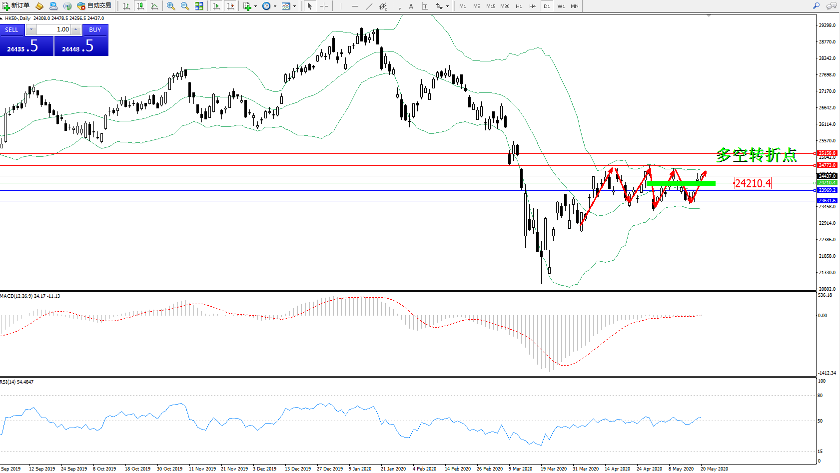 香港恒生指数520日(周三)收盘上涨11.82点,涨幅0.05%,报24399.95点;医疗设备股、生物医药B类股继续强势,微创医疗、威高股份等多股续创新高,信息科技顾问、医疗及医学美容服务、医疗保健设备、家居装修零售商、出版等5个板块领涨,从沪深港通南北资金流向看,截至发稿,南向资金净流入18.61亿元,其中沪港通净流入7.13亿元,当日资金余额为412.87亿元,深港通净流入11.48亿元,当日资金余额为408.52亿元。国际与本土资金各行业的持股市值与港股上市公司的市值分布大体一致,持股最多的金融、信息技术、房地产与可选消费,在港股所占市值权重也最大。南下资金更偏好于金融、医疗和硬件科技公司,剔除建行、工行后,南下持股偏向于医疗保健、信息技术与可选消费。