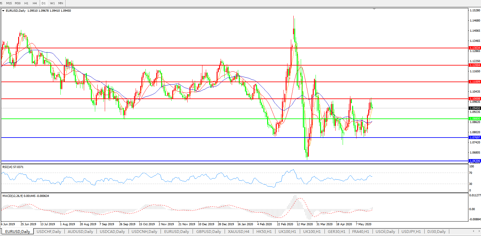 欧元区最新制造业PMI初值数据仍徘徊于低位,对行情拉动效果有限。随着政府为遏制病毒蔓延而采取的一些封锁措施有所放松,新冠疫情对欧元区经济的破坏性影响本月略有减弱。IHS Markit首席商业经济学家Chris Williamson表示,欧元区5月企业活动进一步下滑,但调查数据至少带来了令人放心的迹象,表明经济低迷可能在4月触底。第二季度GDP仍有可能以前所未有的速度下降,与第一季度相比下降约10%,但PMI指数的上升增加了人们的预期,即进入夏季,随着封锁限制进一步解除,经济放缓应当会有所好转。