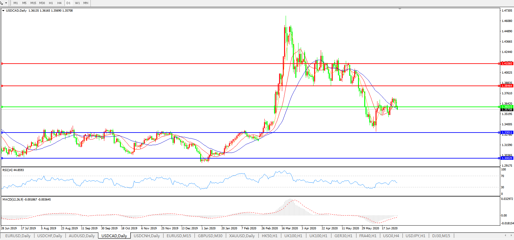交易策略:在1.3600之下,看跌,目标价位为1.3300、1.3000