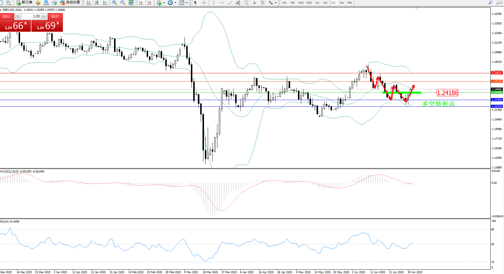 交易策略:1.24186上方看涨,目标1.257391.26924