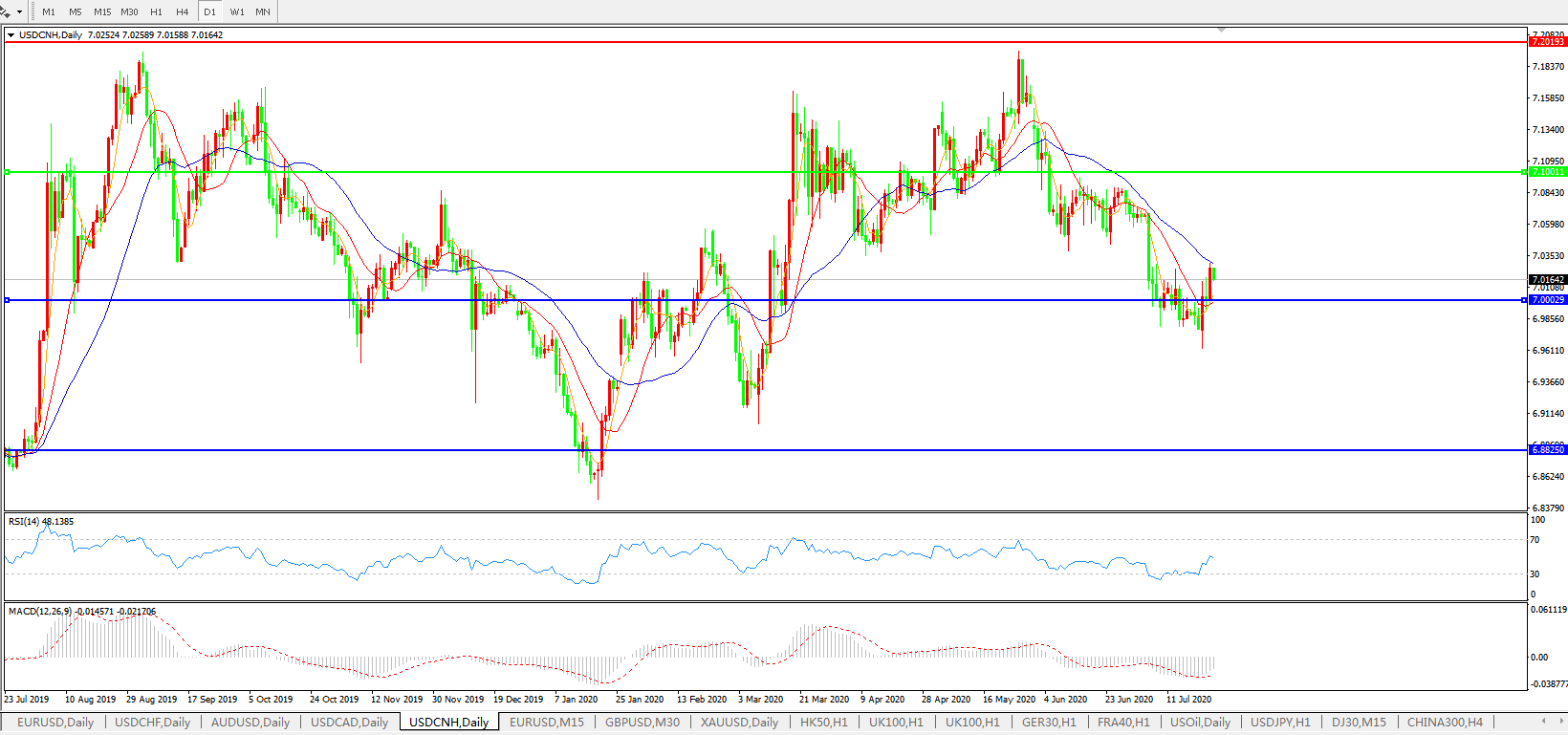 美元兑人民币USDCNH    日线图: